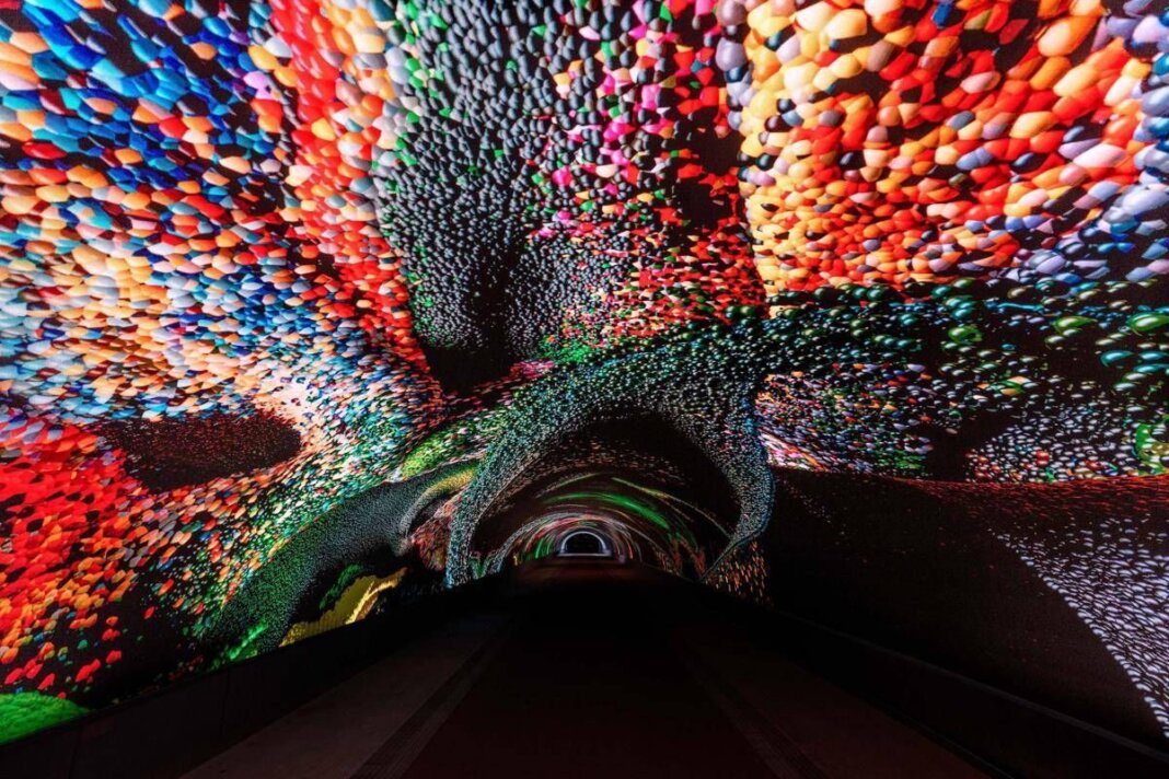 Dietro c’è oltre un anno di lavoro e un team di 20 persone che vengono da tutto il mondo. “Bisogna provare e riprovare, non c’è nessuna scorciatoia, non esiste un pulsante magico che fa l’arte. Bisogna trovare le connessioni giuste, cerchiamo l’umano in quello che non è umano. Siamo andati a raccogliere dati in natura, per esempio nelle foreste pluviali e nei ghiacciai, e poi abbiamo utilizzati dati open source. A quel punto – ha spoegato -abbiamo creato l’algoritmo e allenato l’Ia sul progetto, che è un processo molto difficile per uno studio artistico rispetto a una grande azienda tecnologica, perché le nostre risorse sono limitate. Nel tunnel vedrete milioni di immagini che prendono forma, accompagnate da una bellissima colonna sonora, e le persone avranno una prospettiva unica da ogni punto della galleria. E tutto questo sarà possibile grazie ad energia sostenibile”.