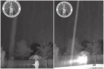 Paura per un appassionato di meteo del collettivo Arezzo Meteo. L'uomo è uscito in giardino per cercare il suo gatto durante un temporale e un fulmine è caduto a circa 10 metri di distanza. A condividere il video dell'accaduto e a raccontare i dettagli è proprio Arezzo Meteo sui propri canali social.  Uscito con un ombrello di ferro in giardino, l'uomo "ovviamente ha preso pure una bella scossa dal manico, infatti nel video cerca di liberarsi dell’ombrello ma non ci riesce perchĂ© la scossa gli ha chiuso la mano", si legge sulla pagina Facebook.  Arezzo Meteo sottolinea anche che il membro del collettivo "è vivo per un soffio". Proprio ieri un 65enne è morto a Castelfiorentino (Firenze) mentre dava da mangiare al proprio cane, folgorato dalla scarica elettrica di fulmine che potrebbe aver colpito prima un filo di ferro usato per stendere la biancheria e che poi sarebbe rimbalzata sulla ciotola del cibo del cane, sempre metallica.   —cronacawebinfo@adnkronos.com (Web Info)