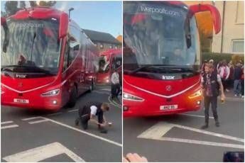 Tifoso del Crystal Palace si allaccia la scarpa e blocca… il pullman del Liverpool