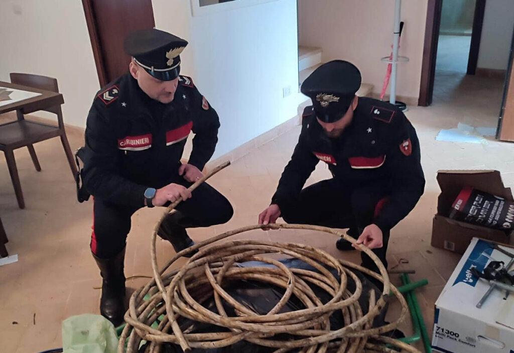 La perquisizione veicolare e un’ispezione delle cunette stradali dove i due avevano lanciato il rame, per disfarsene, visto l’inseguimento dei carabinieri, hanno consentito a questi ultimi di rinvenire arnesi atti allo scasso, nonché circa 100 chilogrammi di rame.