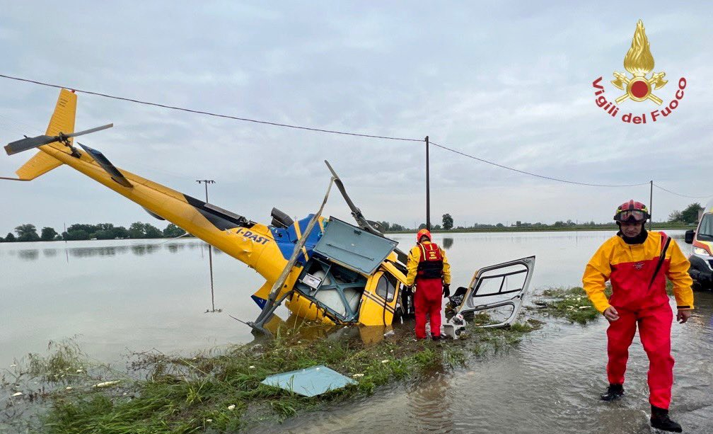 Oggi sabato 20 maggio anche l’incidente con un elicottero precipitato in provincia di Ravenna, a Belricetto di Lugo, mentre era impegnato in un intervento per i guasti alla linea elettrica provocati dal maltempo.