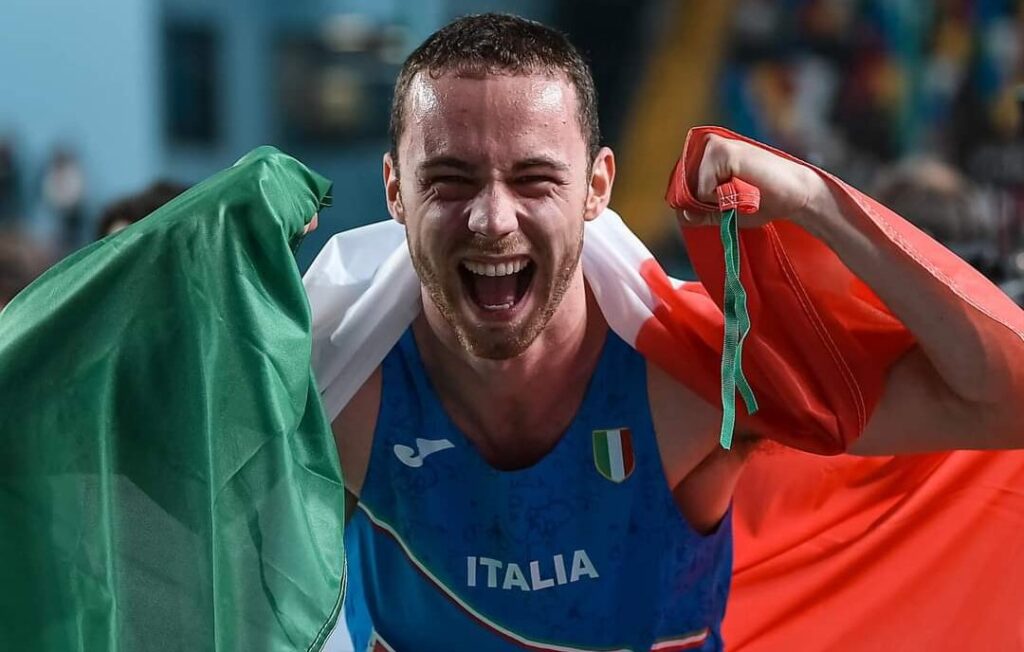E a Pietrasanta, al campo di atletica Falcone e Borsellino dove si allena da sempre, festa grande per Samuele Ceccarelli, 23 anni, Atletica Firenze Marathon, allenato da Marco Del Medico.